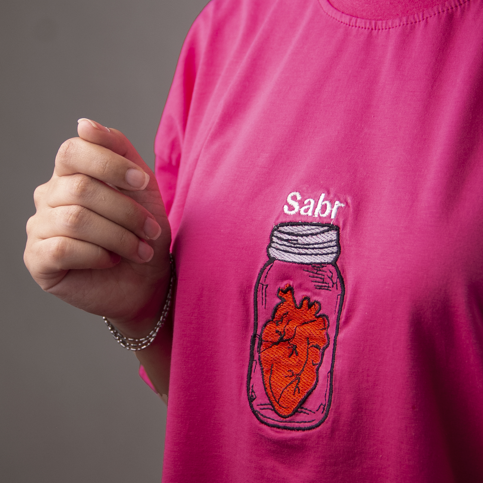تیشرت نخی اسپرت مدل آستین سه ربع گلدوزی