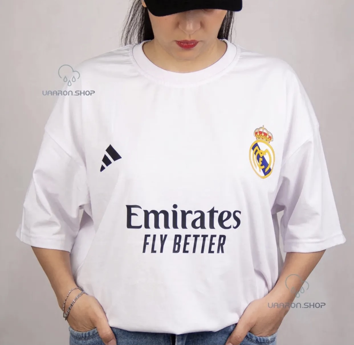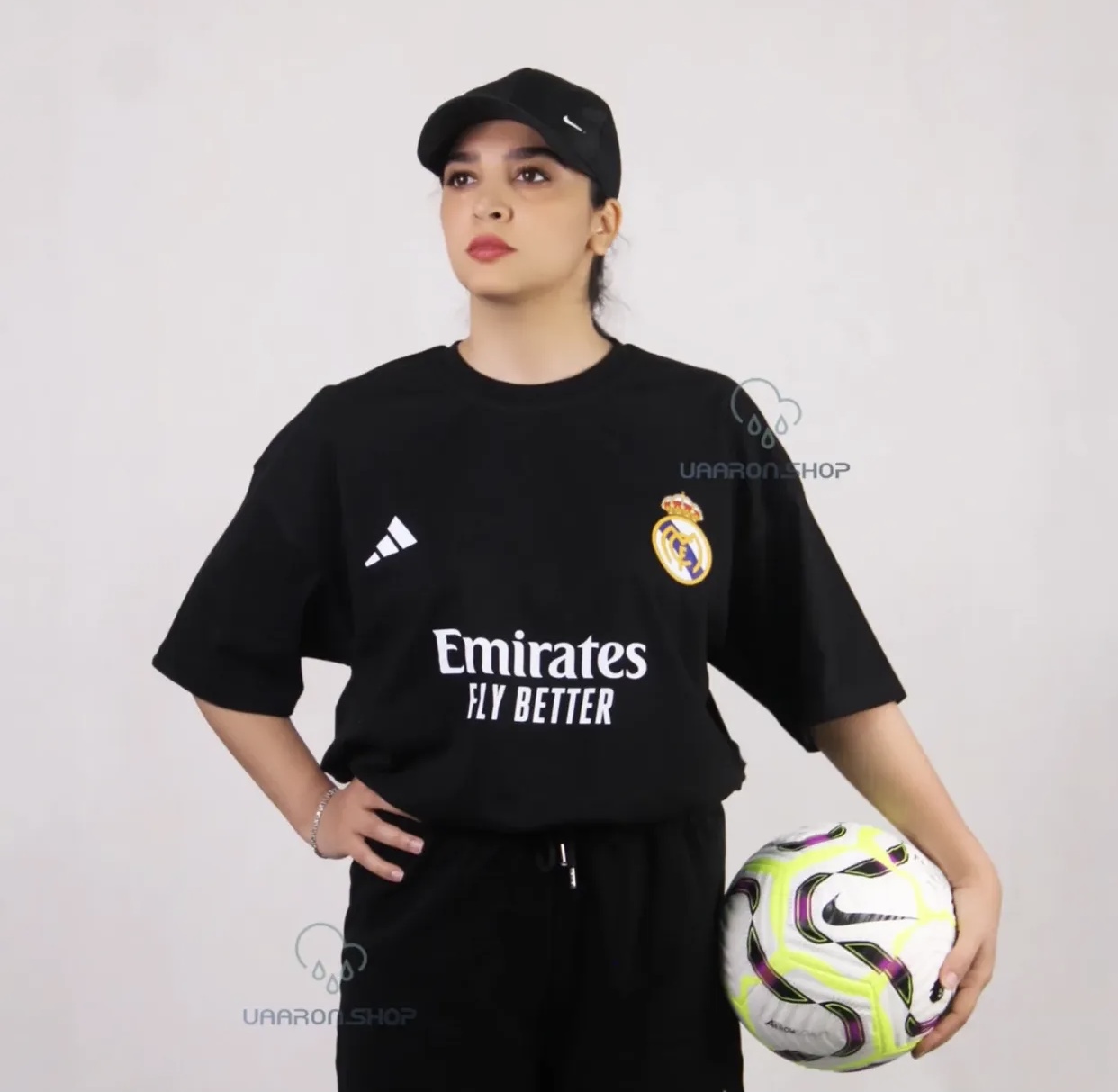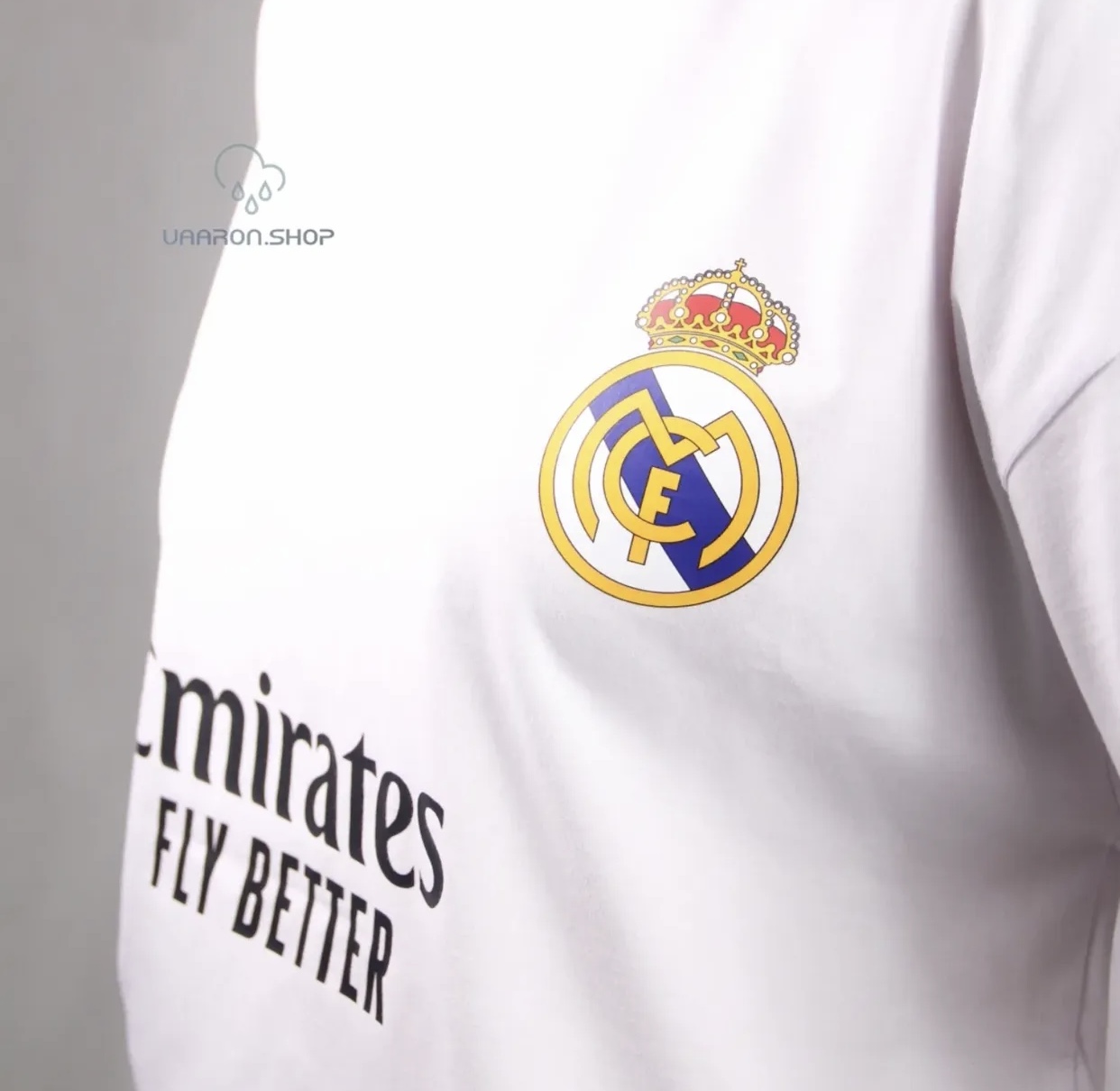 تیشرت نخی مردانه مدل آستین سه ربع طرح رئال مادرید