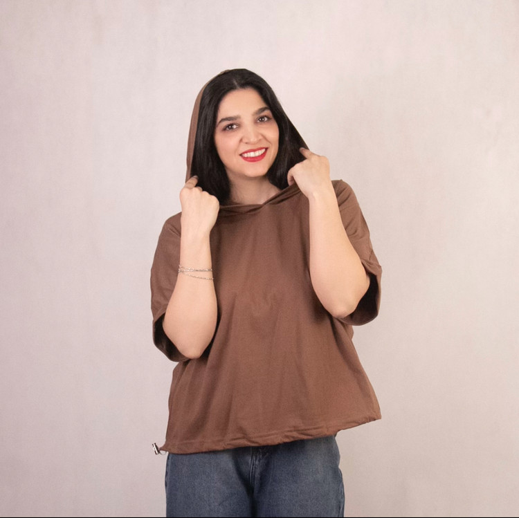 تیشرت کلاه دار زنانه مدل پاکتی