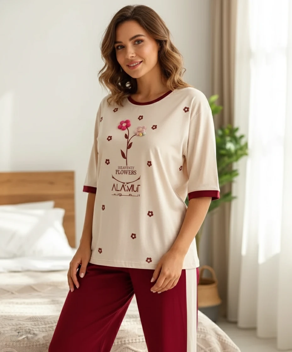 ست تیشرت و شلوار زنانه مدل طرح برجسته