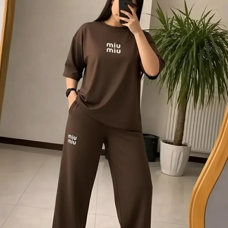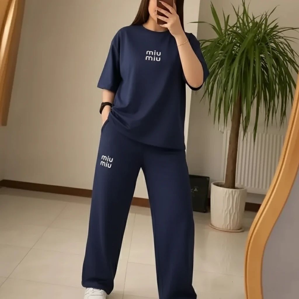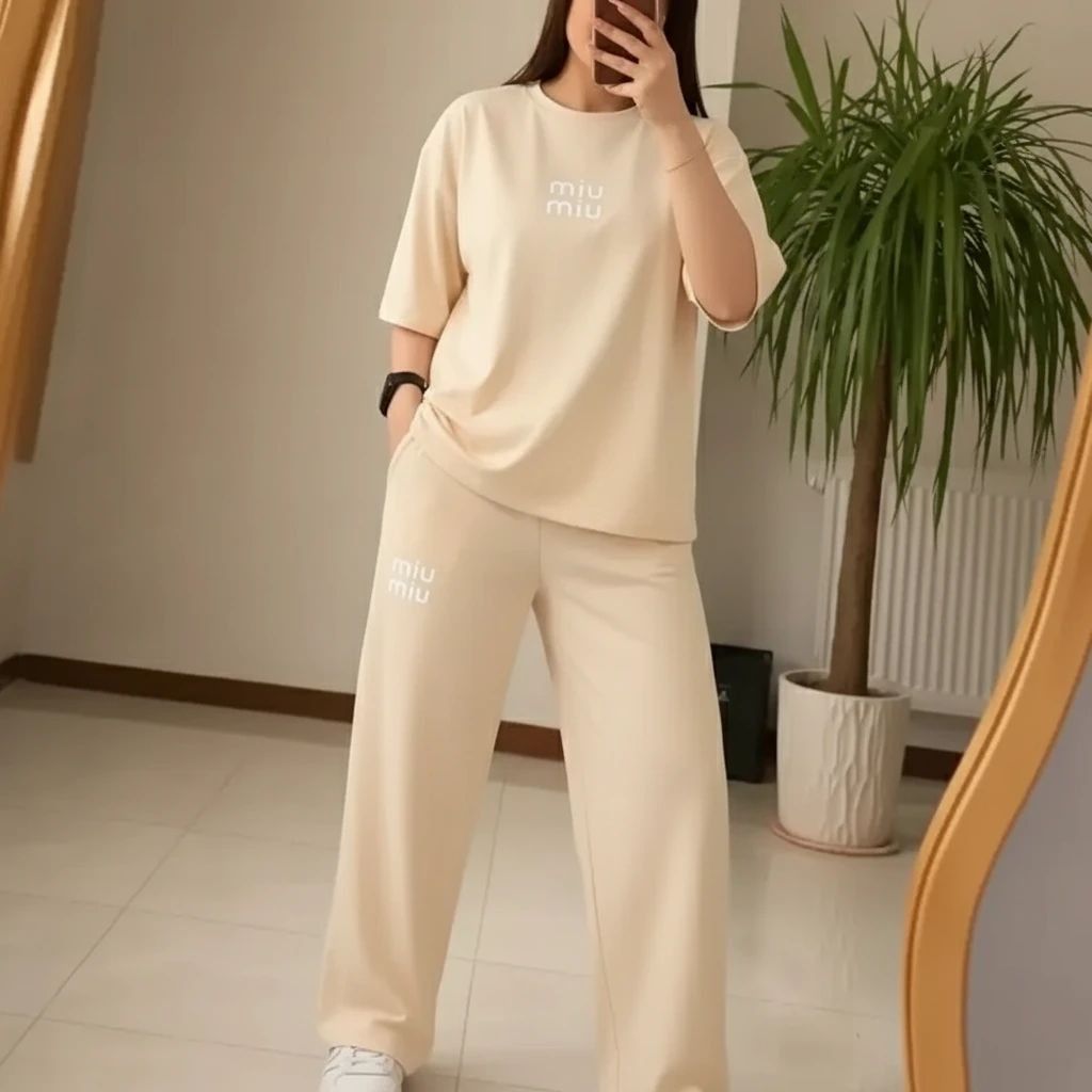 ست تیشرت و شلوار زنانه miu miu/استایلی راحت و شیک برای بهار و تابستان